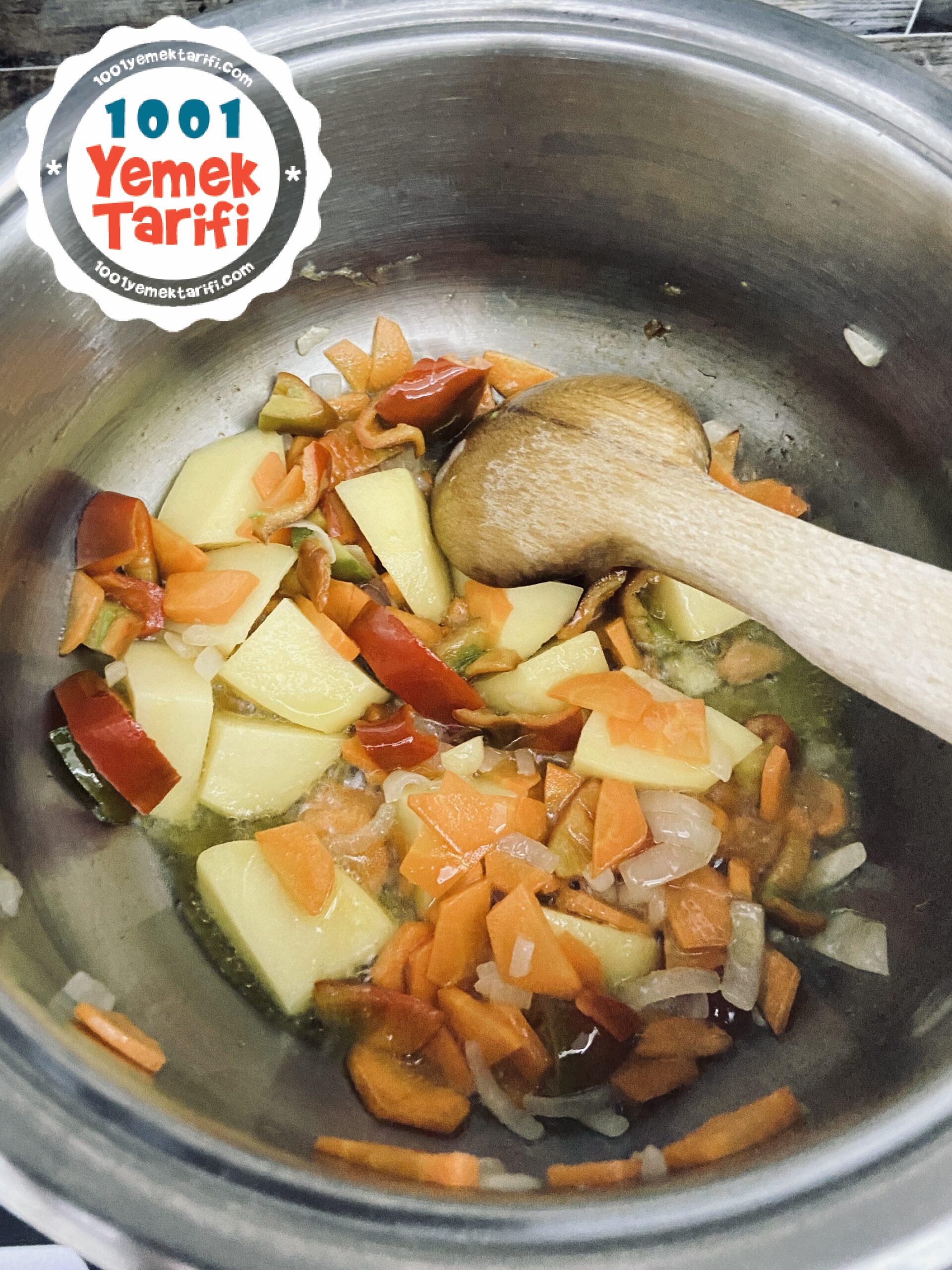 • Sebzeleri mercimeği zerdeçalı çok güzel bir şekilde kavuralım