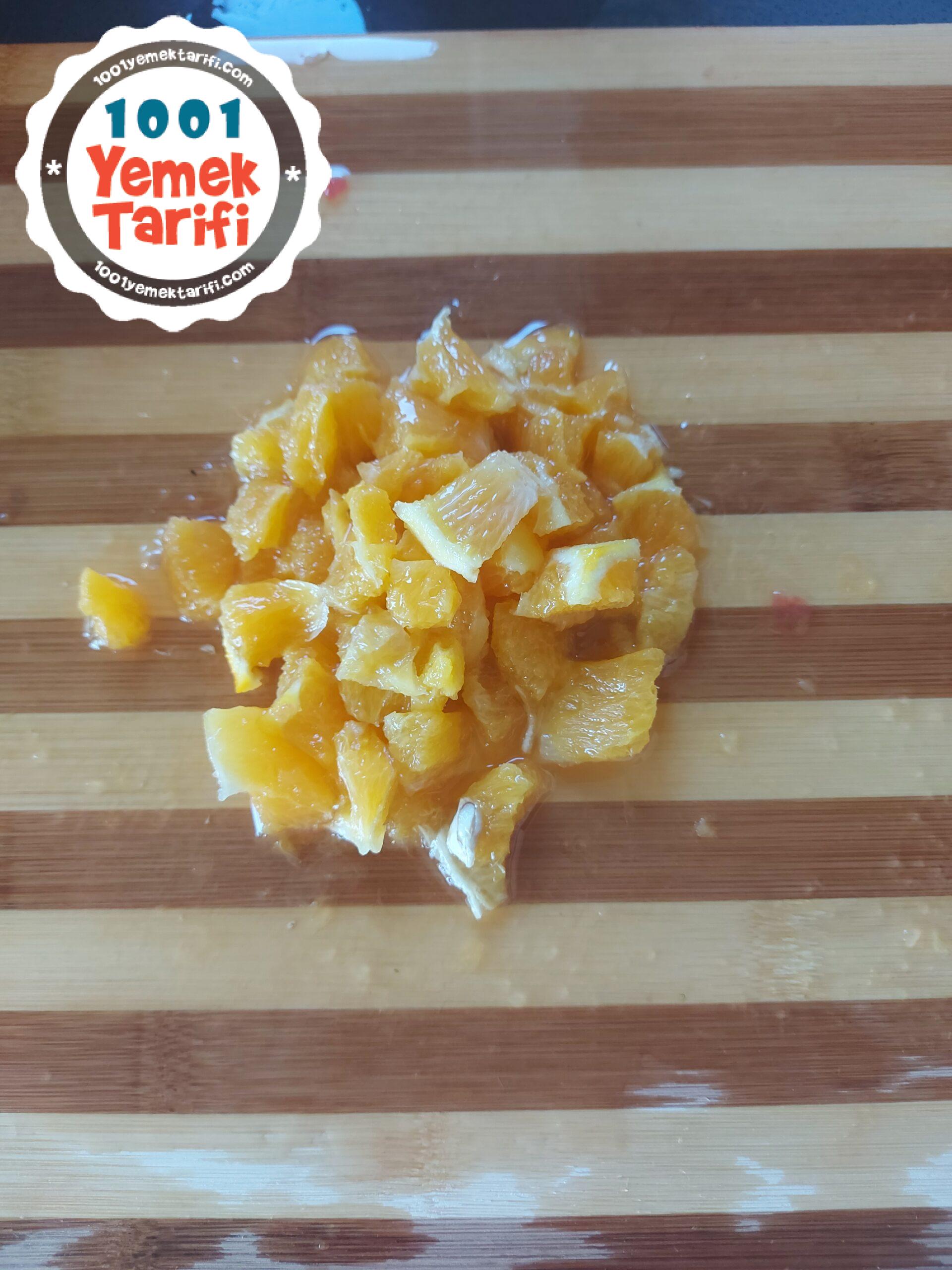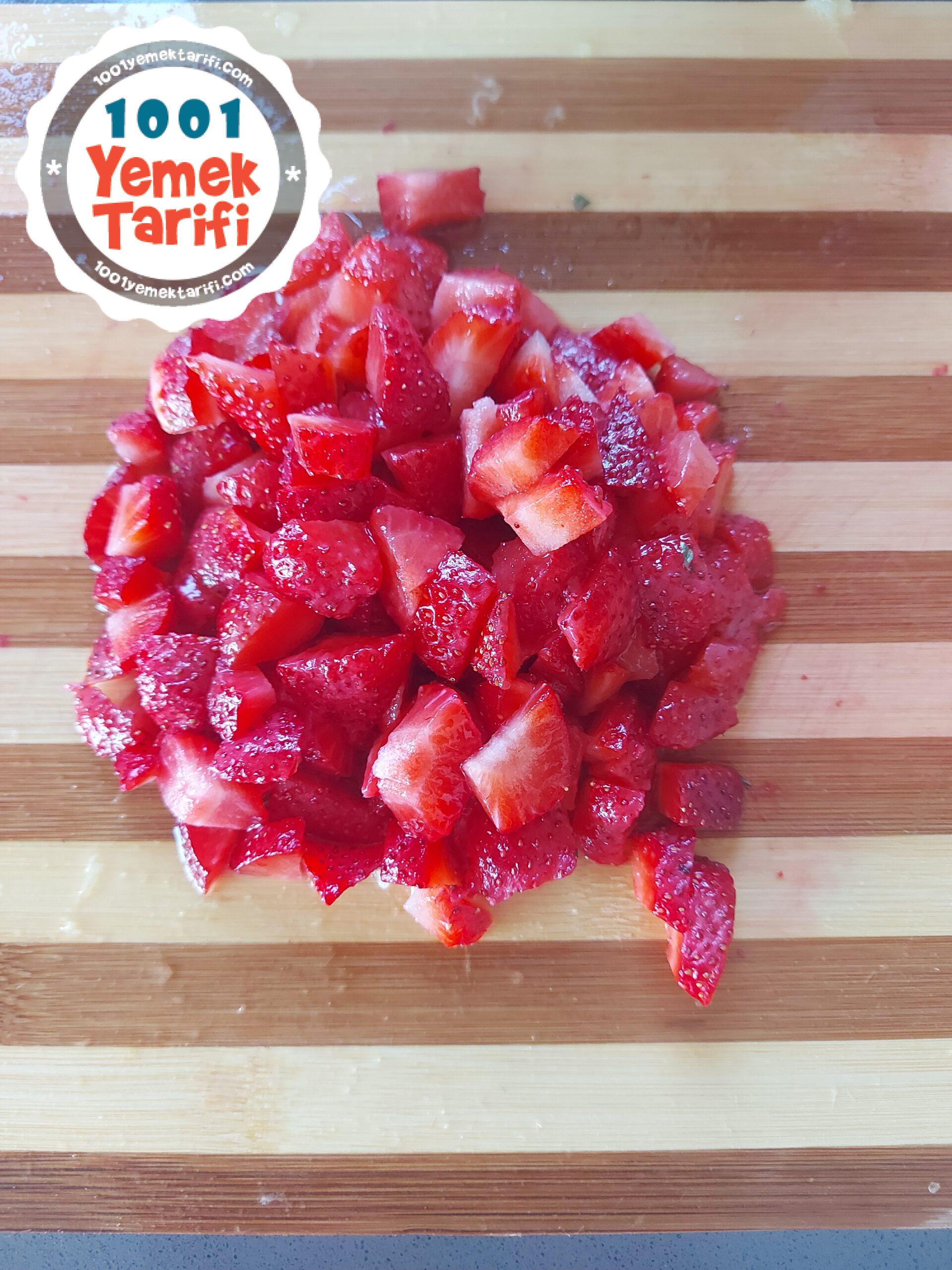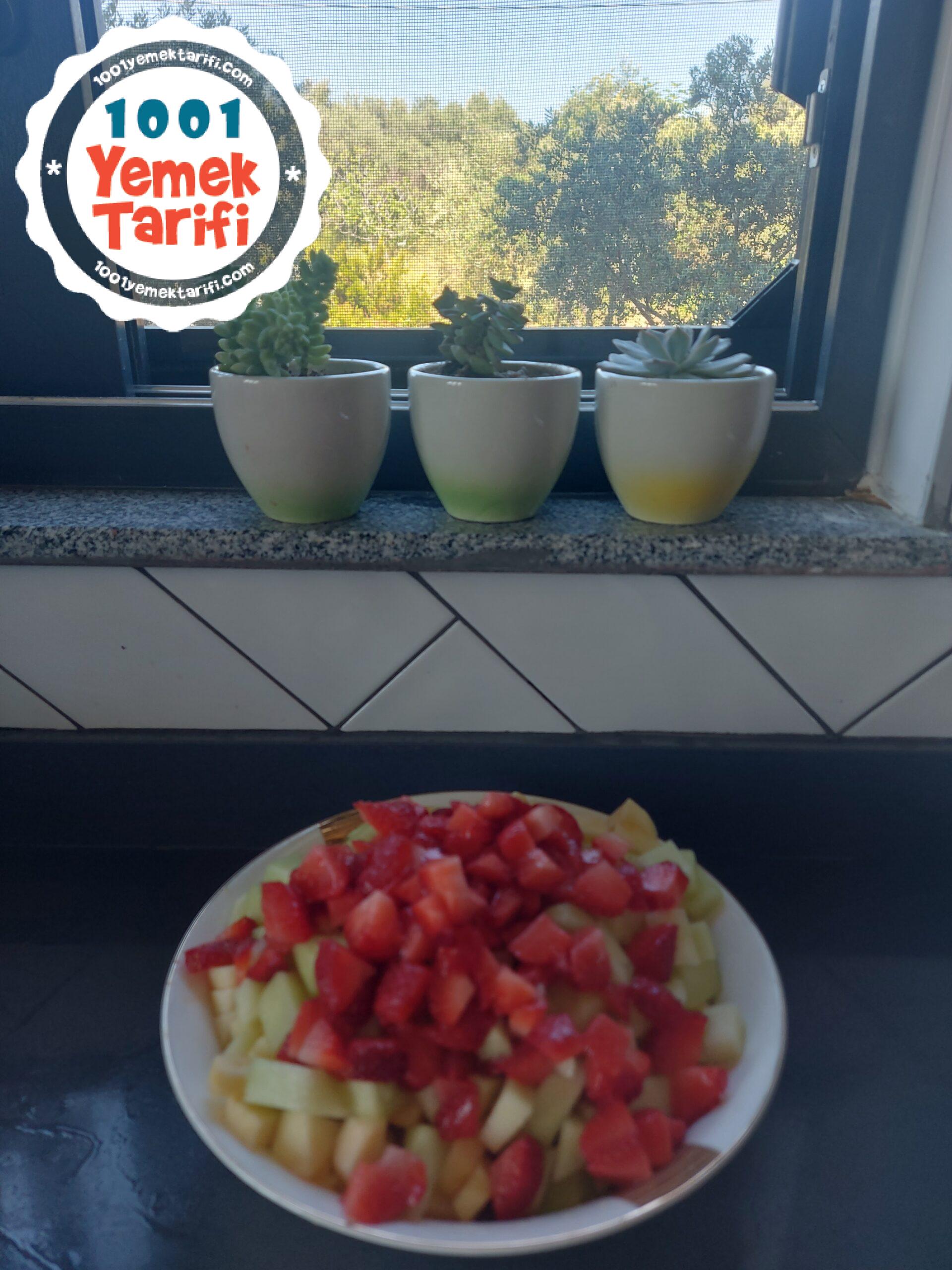 - Sirasıyla kavun,elma,portakal,çilek en son olacak şekilde dogranarak eklenir.