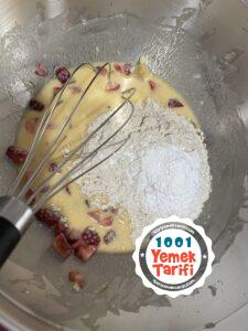- Un ve kabartma tozunu ekleyip kıvam alana kadar karıştıralım.