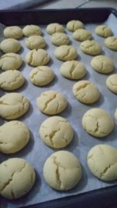 - Elimizle ceviz büyüklüğünde minik minik bezeler alıp yuvarlayalım ve yağlı kağıt serilmiş fırın tepsisine dizelim. (Bu ölçü ile tam bir tepsi kurabiye oldu)