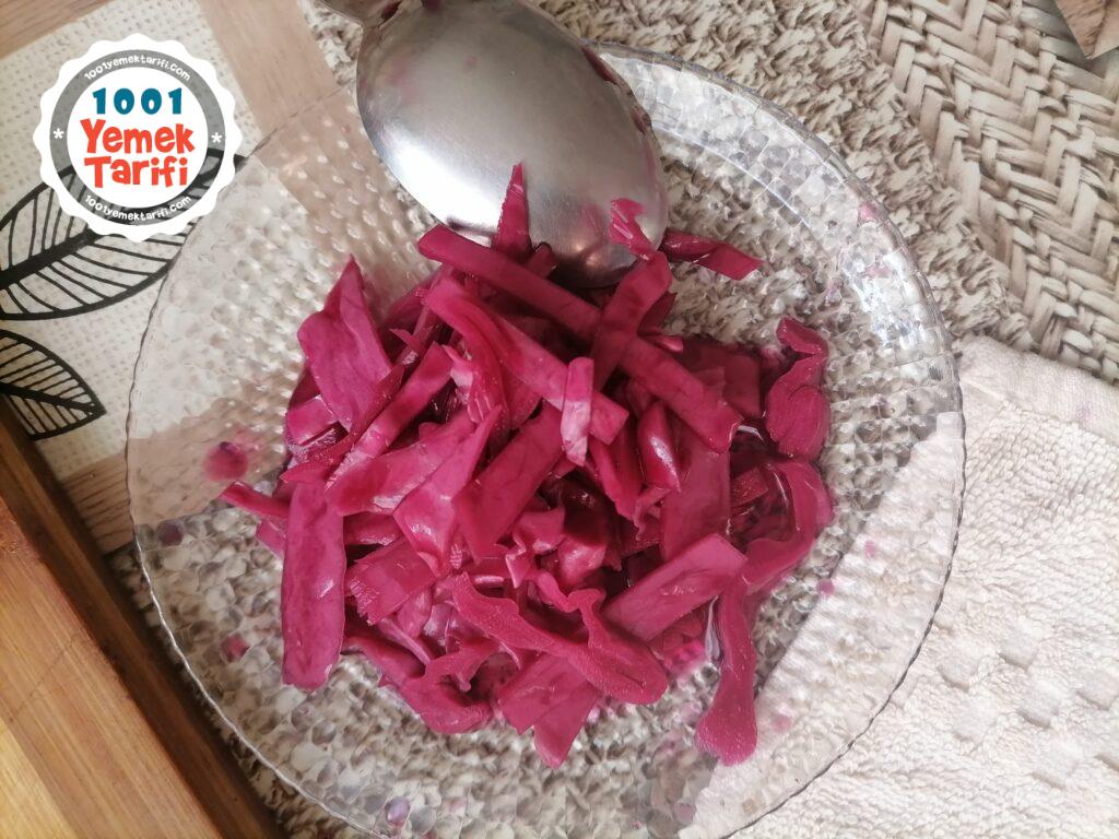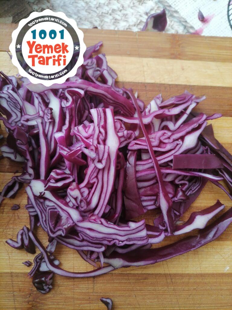• Mor lahanaları yıkayıp isteğe göre doğruyoruz
