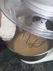 - Unu ve kabartma tozunu eleyin ekleyin margarini tuzu da ekleyip karıştırın.