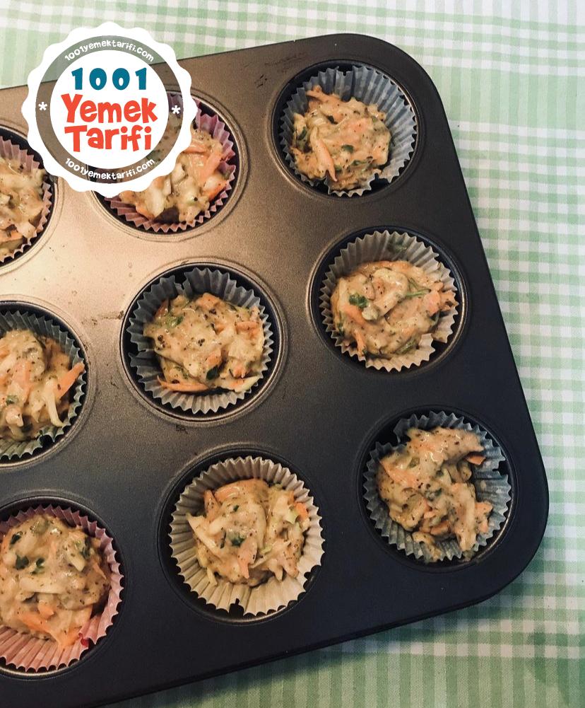 - Hazır olan mücver harcını isterseniz düz bir tepsiye isterseniz de benim gibi muffin tarzı bir kaba koyun.