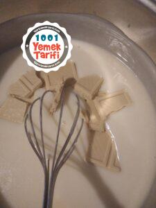- Ardından beyaz çikolata katılır ve bütün malzemelerin güzelce karıştırılması sağlanır.
