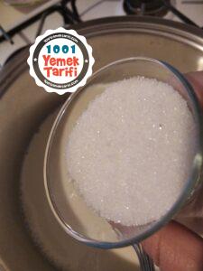 - Diğer yandan tencereye su ve tozşeker alınır ve kaynatılır.