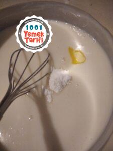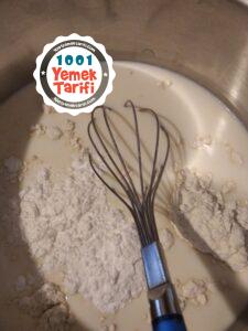 - Şeker eriyince üzerine nişasta ve un ilave edilir.