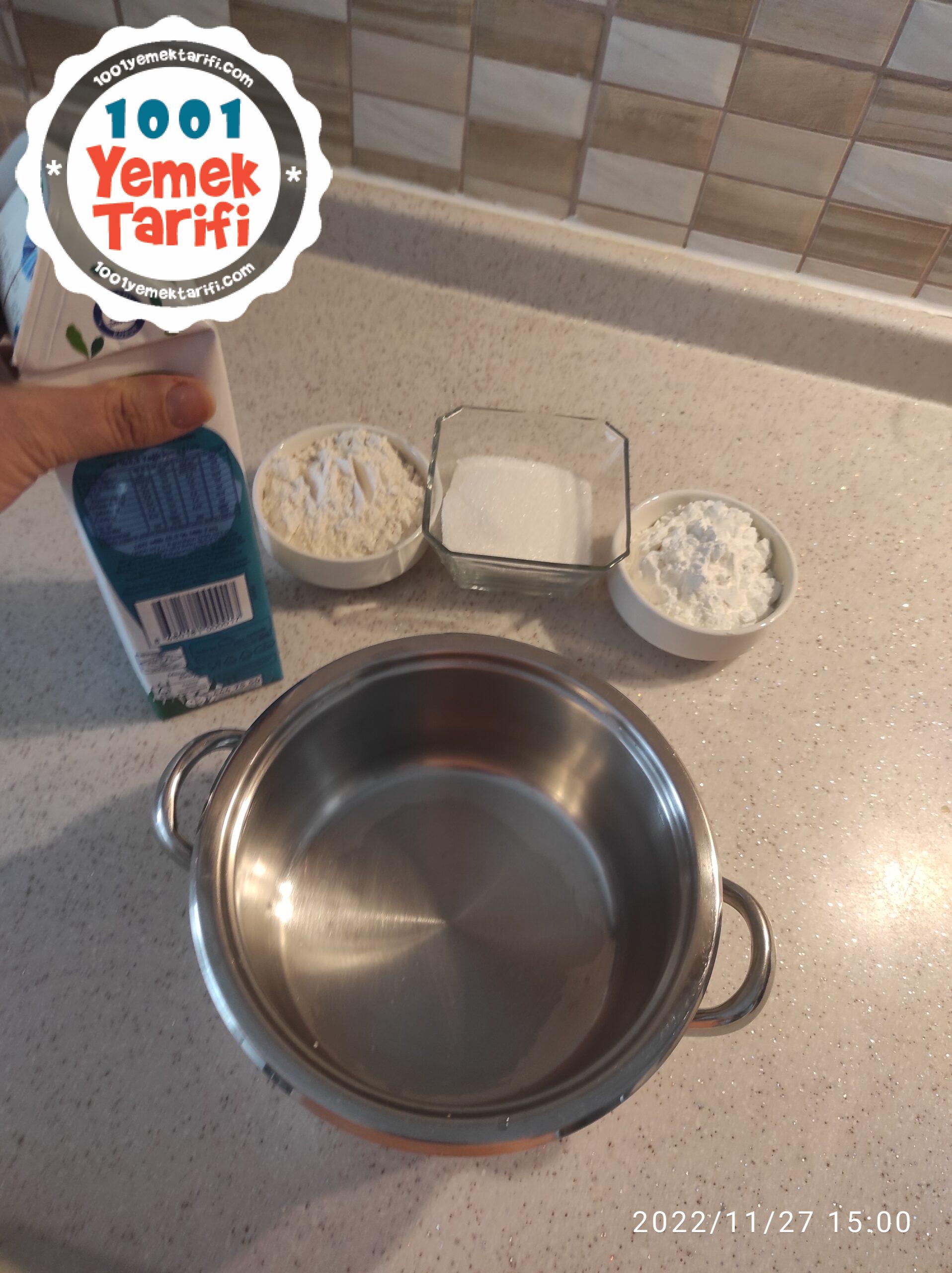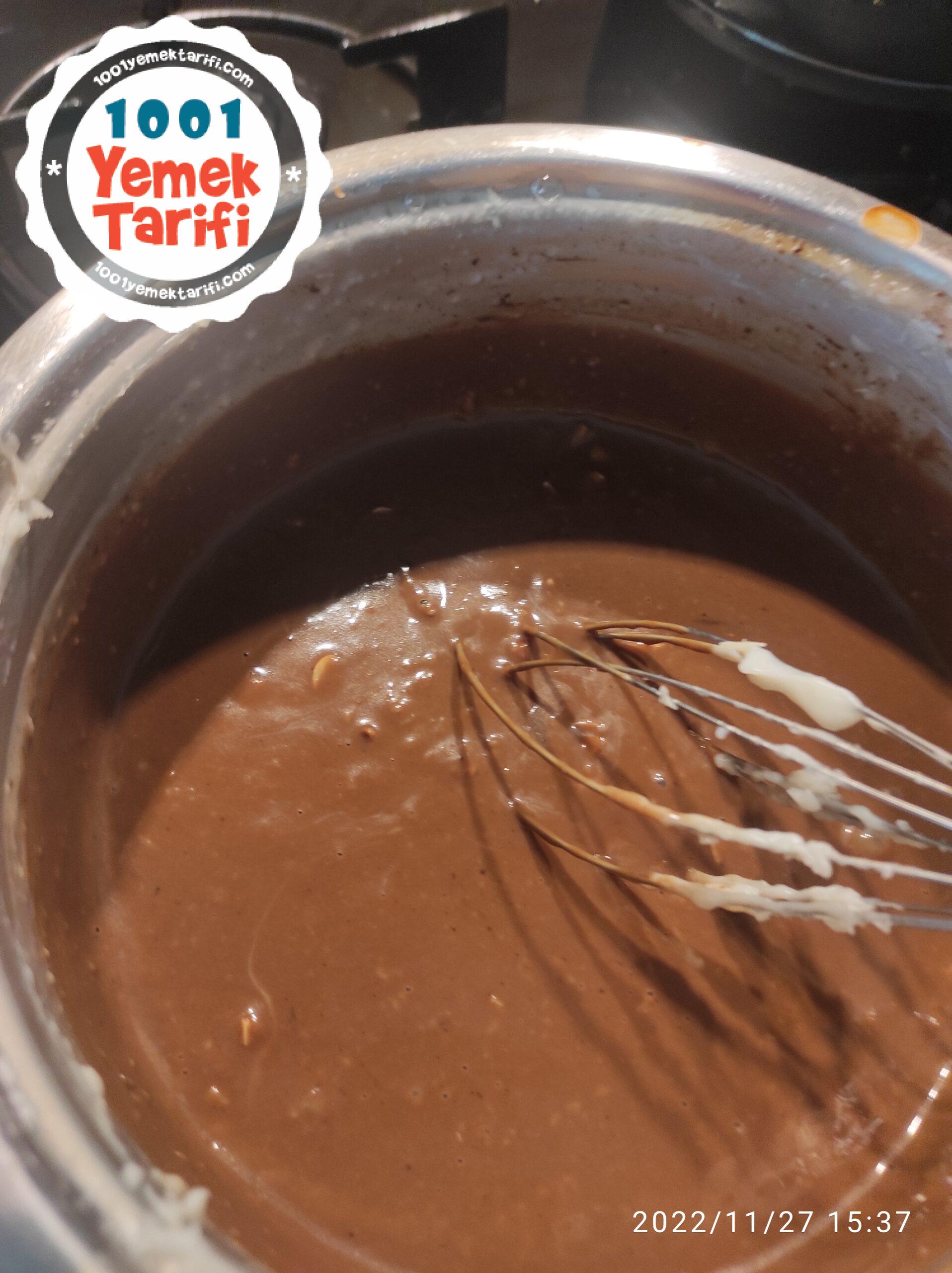 • Kalan kremaya 200 ml süt ekleyip ısıtalım