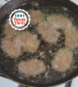 - Tavamıza sıvı yağımız ekleyip kızdırıyoruz ve dinlenen köftelerimizi kısık ateşte arkalı önlü kızartıyoruz.