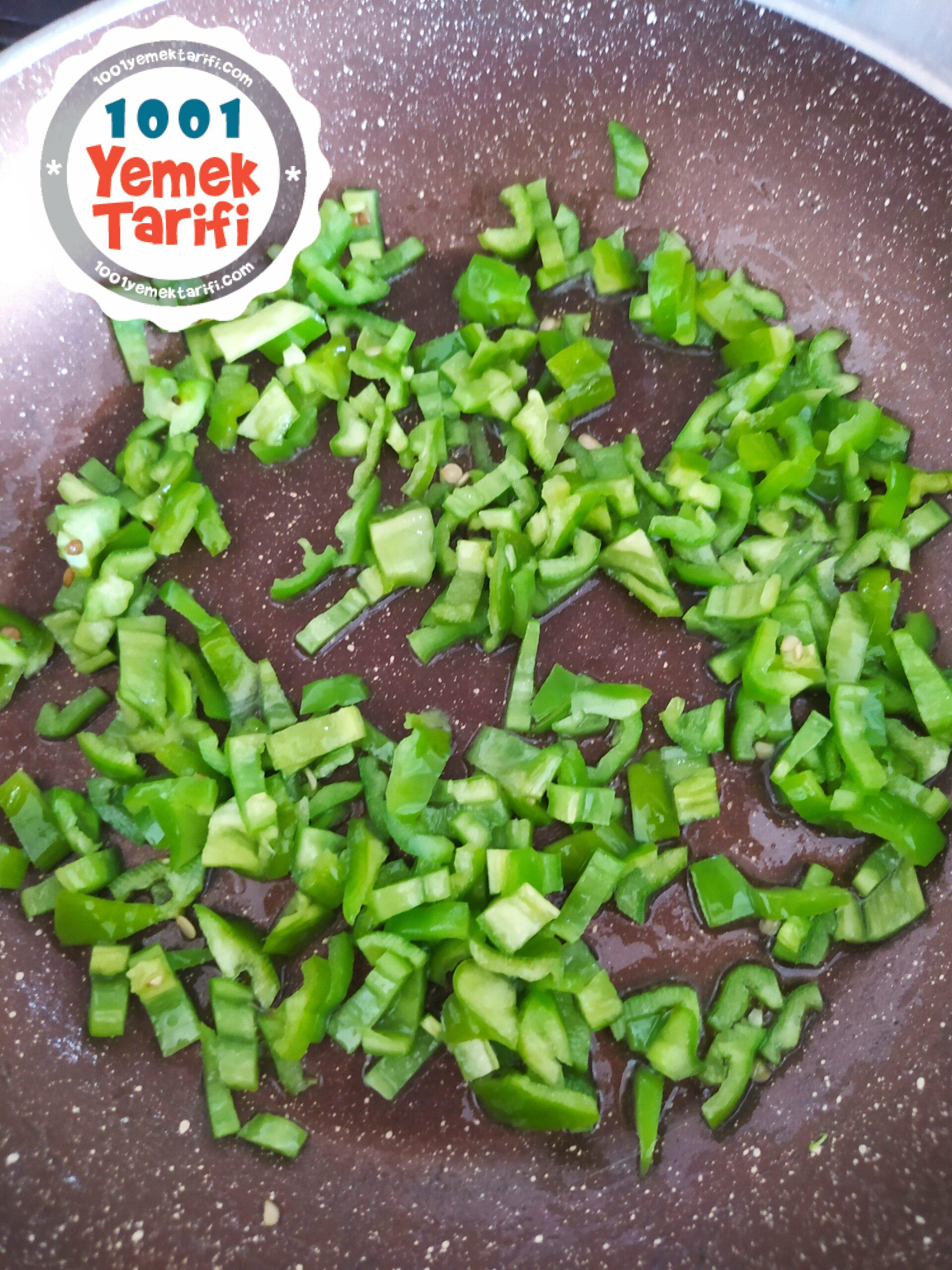 - Öncelikle tavaya yağımızı alalım ve ince ince doğradığımız biberleri ilave ederek soteleyelim.