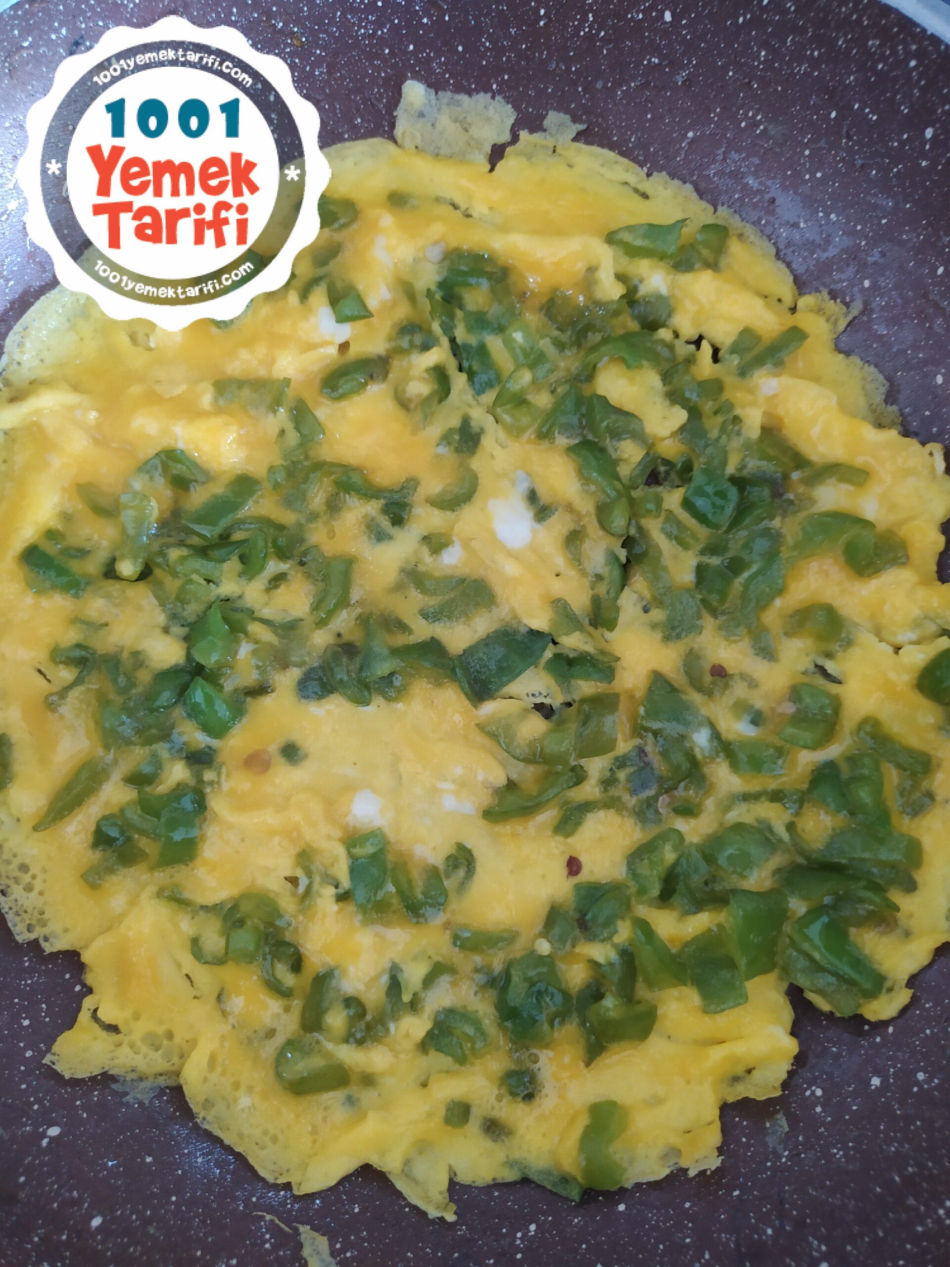 - Uygun bir kasede yumurtaları güzelce çırpalım ve biberlerin üzerine yavaş yavaş gezdirerek ilave edelim.