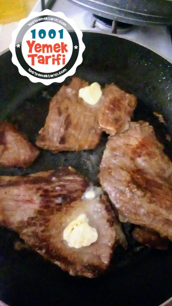 - Alt kısım da kızarınca 2 yemek kaşığı kadar tereyağ, tuz ve baharatları ekleyip biraz daha kızartalım. Ve etimiz hazır.