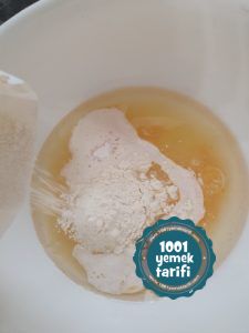 • Daha sonra unu ilave edip hamur haline gelene kadar yoğuralım 15 dakika bekletelim.