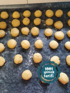 • Hamurları ceviz büyüklüğünde bezeler yapın 14 parça olacak ve 10 dakika daha bekletin.