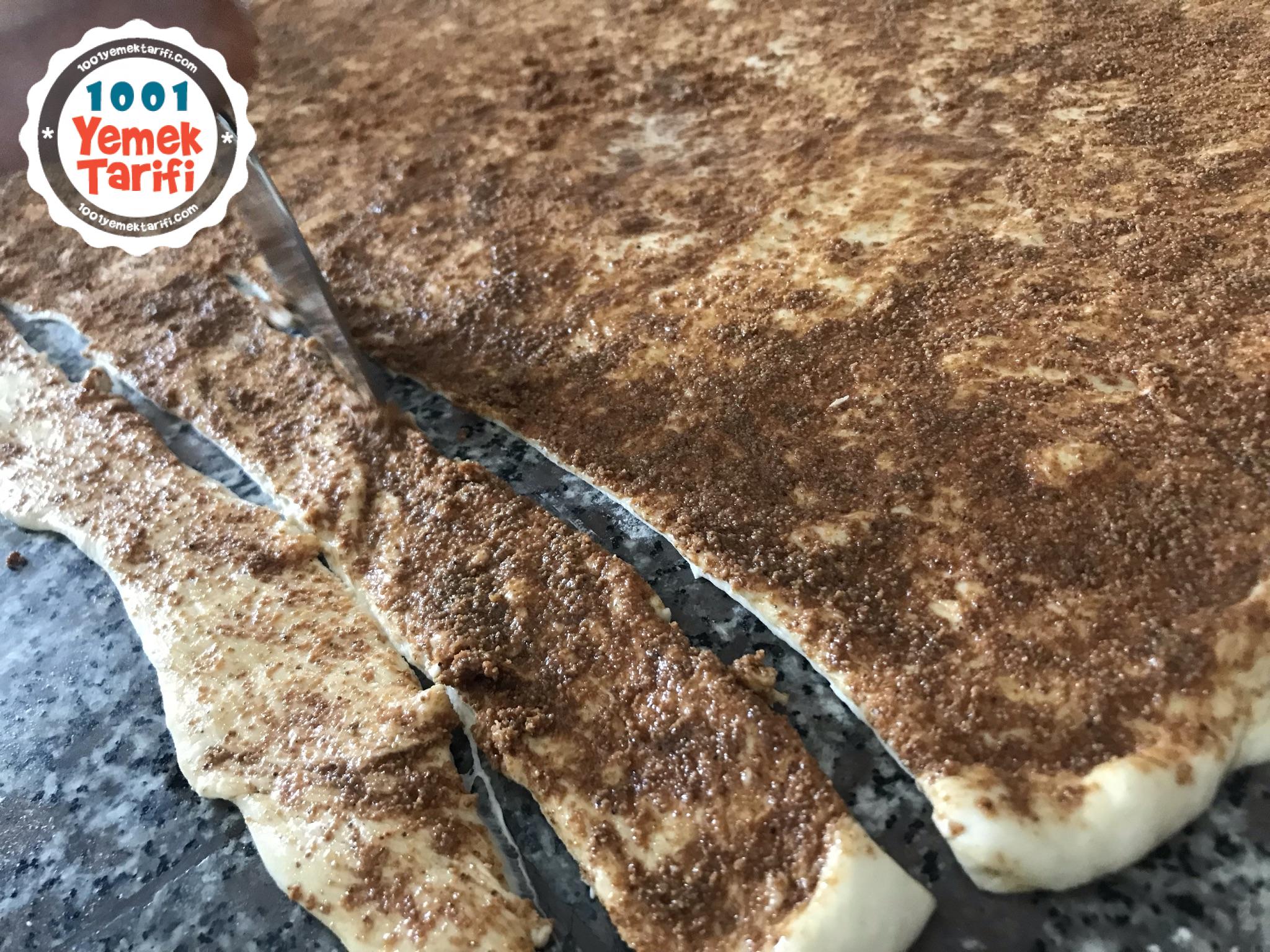 - kestiğimiz hamurlardan iki tanesini üst üste alalım ve ters yönde bükerek burgular oluşturalım.