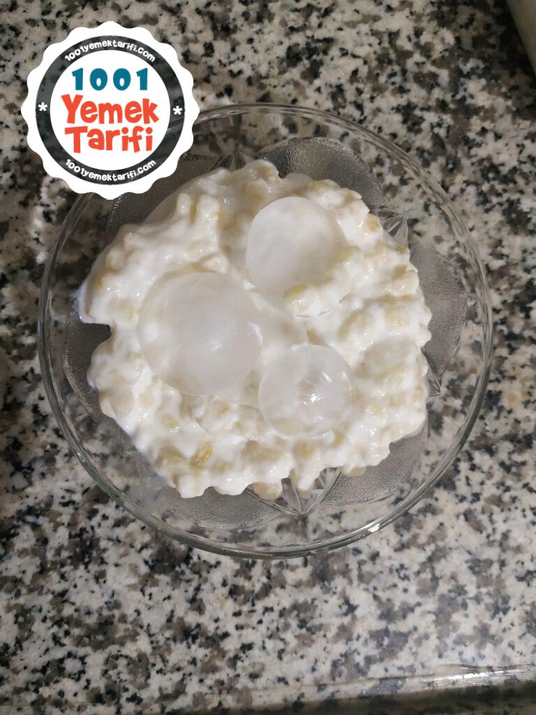 - tuzu eklenir piştikten sonra üzerine yoğurt yavaş yavaş ilave edilir bir asim daha kaynatılır ocaktan alınır soğutulur servis edilir yapacaklara şimdiden afiyet bal olsun
