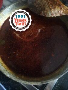 - Pişince Ayrı bir sos tavamıza yağımızı koyuyoruz ısınınca içine biber ve annesini atıyoruz.