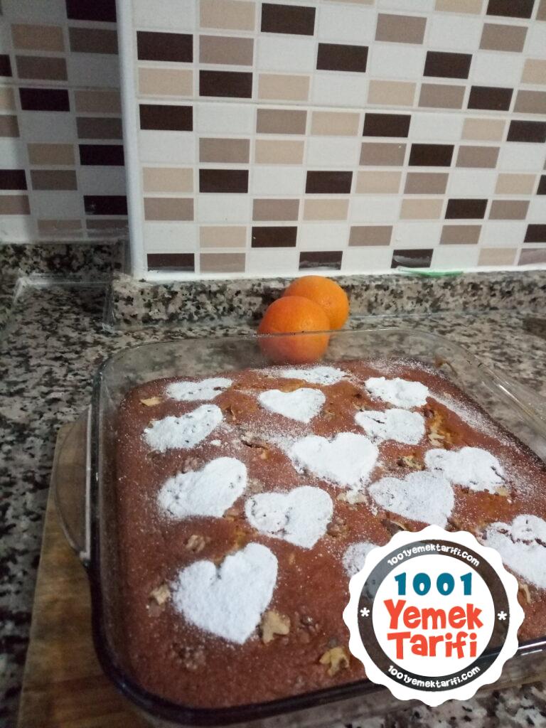 - Üzerine iri ceviz içlerini atıyoruz. Önceden ısıtılmış 180 derece fırında 35 dk pişiriyoruz. Üzerine pudra şekeriyle süslüyoruz.