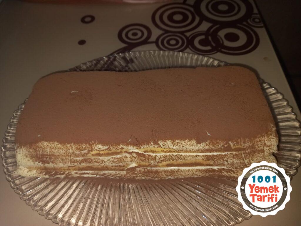 - Daha sonra servis edeceğiniz tabağa ters çevrin üzeirne biraz kakao eleyin