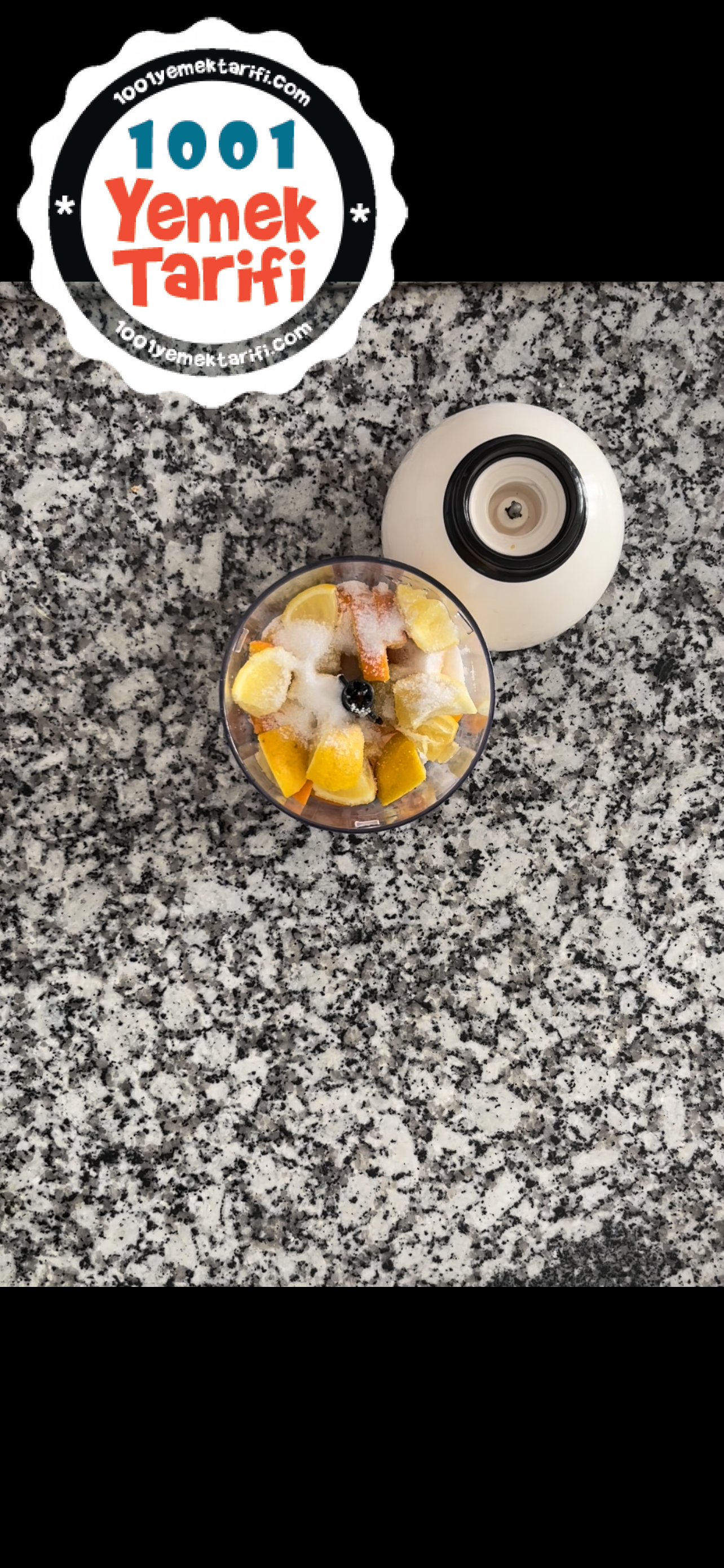 - Uzerine yarim bardak toz seker ekleyip rondodan geciriyoruz uzerine bibardak su koyup yarim saat bekletiyoruz limon tuzunu da damak tadiniza gore ekliyoruz kalan sekeri ilave edip karistiriyoruz