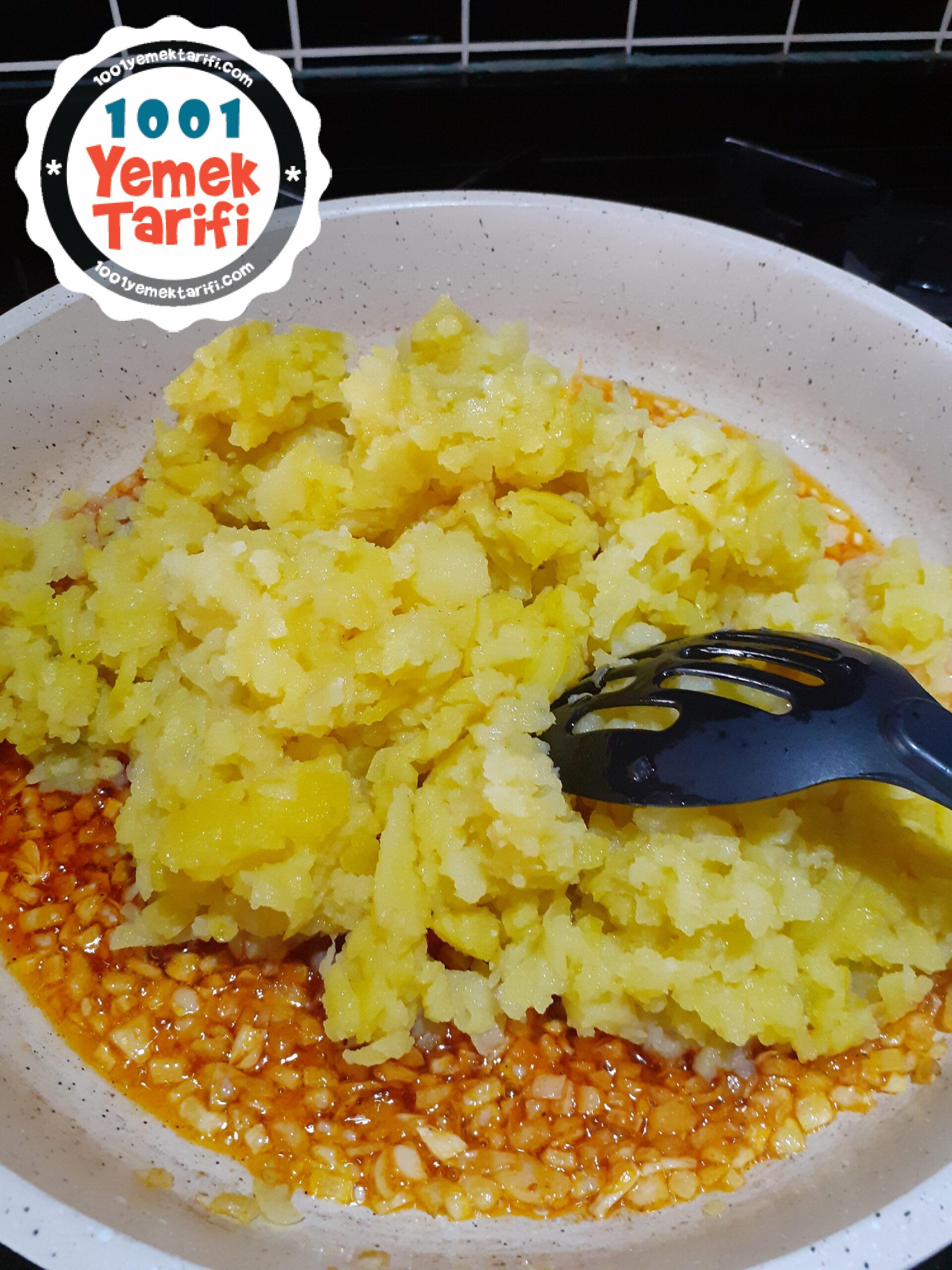 • Ezilmiş patatesleri ve maydanozu ekleyip karıştırıyoruz.