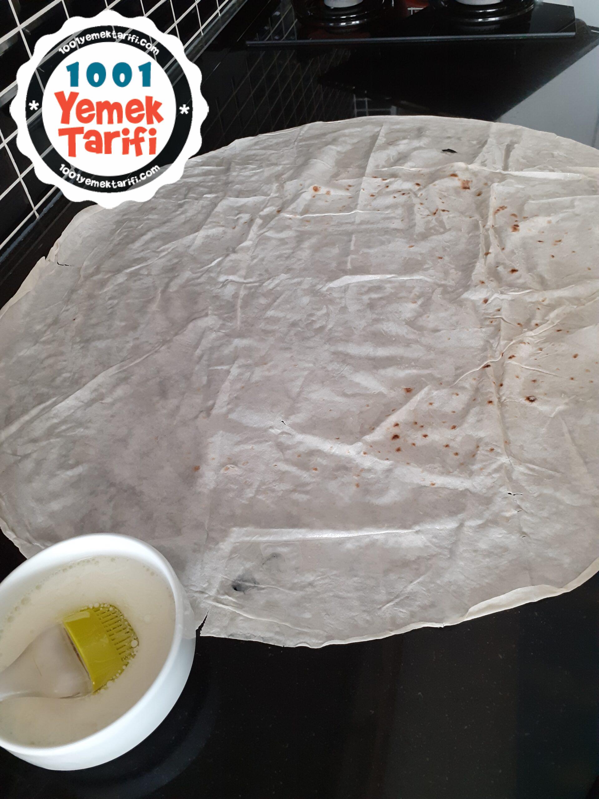 • Yufkamızı tezgaha seriyoruz ve dört eşit parçaya bölüyoruz.