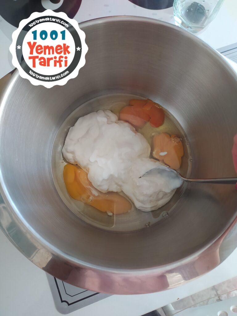- Yumurta yoğurt ve sıvıyağ bir kaba alınarak karıştırılır.