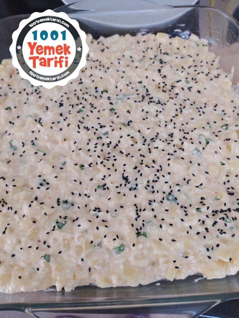 - İçi yağlanmış borcama dökülür ve üzerine tercihe göre susam çörotu serpilir ve 180 derece fırında alt üst kızarana kadar pişirilir.