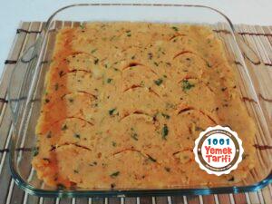- Üzerine yumurta, un, irmik, salçalar ve tuzu ekleyip macun kıvamına gelene kadar yoğuruyoruz.