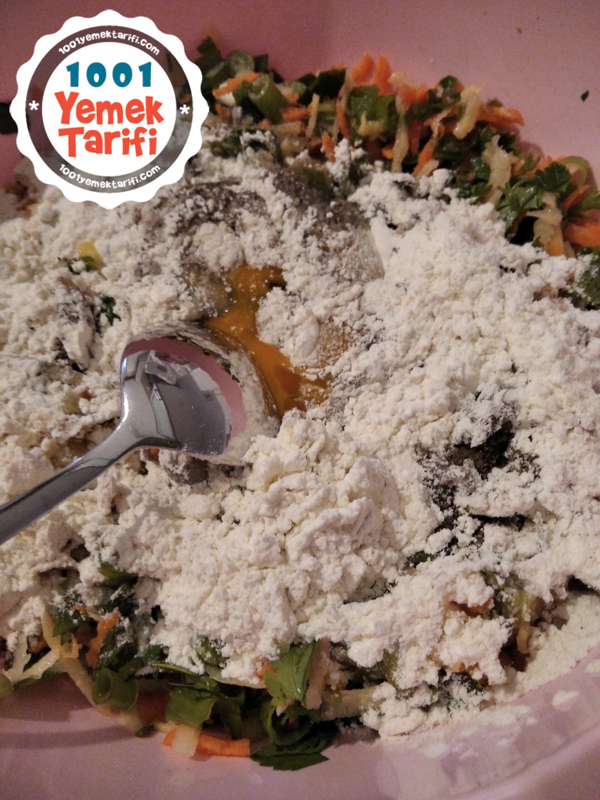 • Ardından doğranmış maydanoz ve yeşil soğan, un, mısır unu.