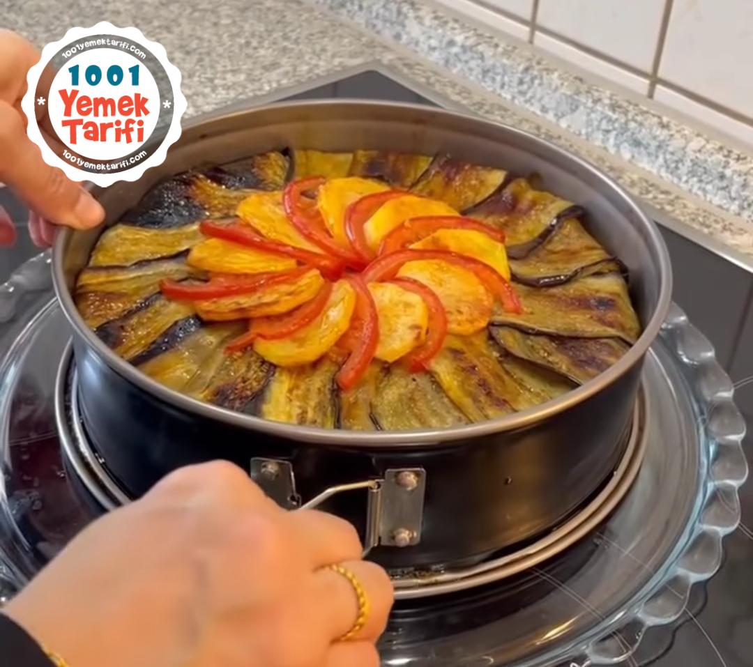 - Son olarak bir sıra daha patates dilimi yerleştirerek patlıcanları üzerine kapatalım.