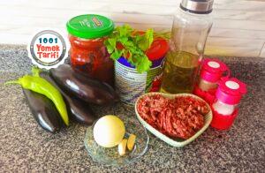 - Uygun tencere ya da tavaya dizdiğimiz patlacanların üzerine hazırladığımız kıymalı harcı dökelim.