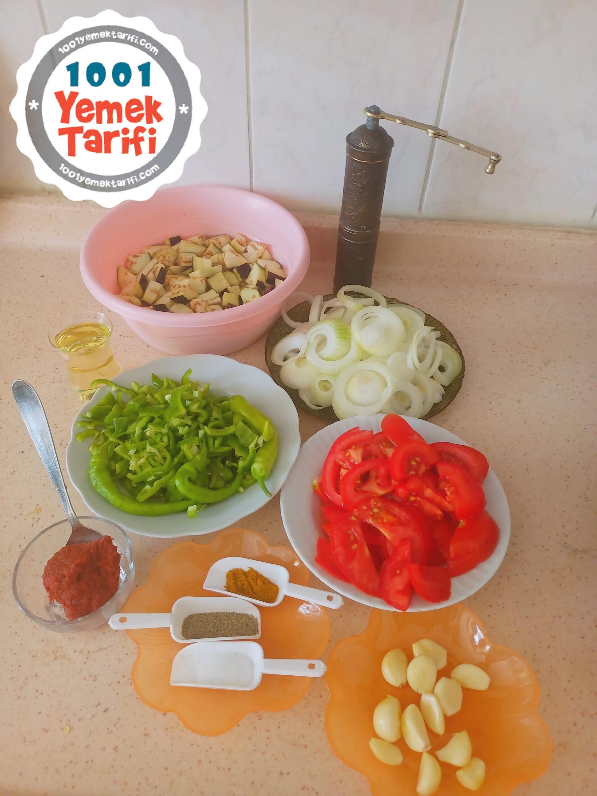- Alacalı soyduğumuz ve küp küp doğradığımız patlıcanları tuzlu suda bekletmek