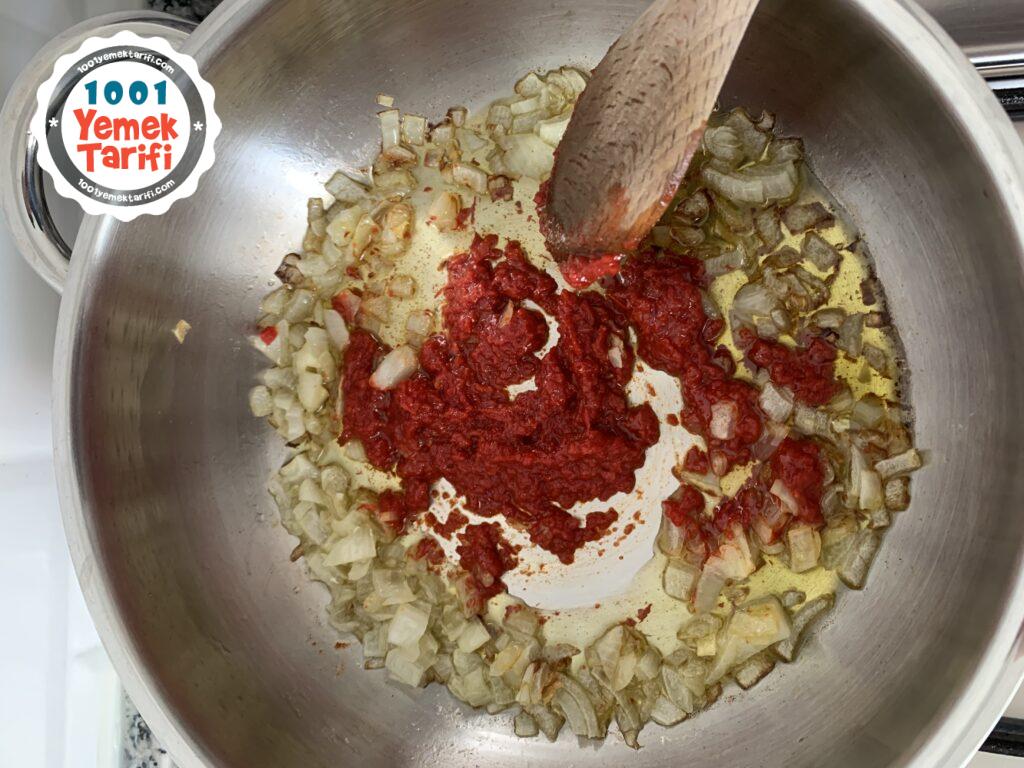 - Salçayı ekleyip bir iki tur daha çeviriyoruz