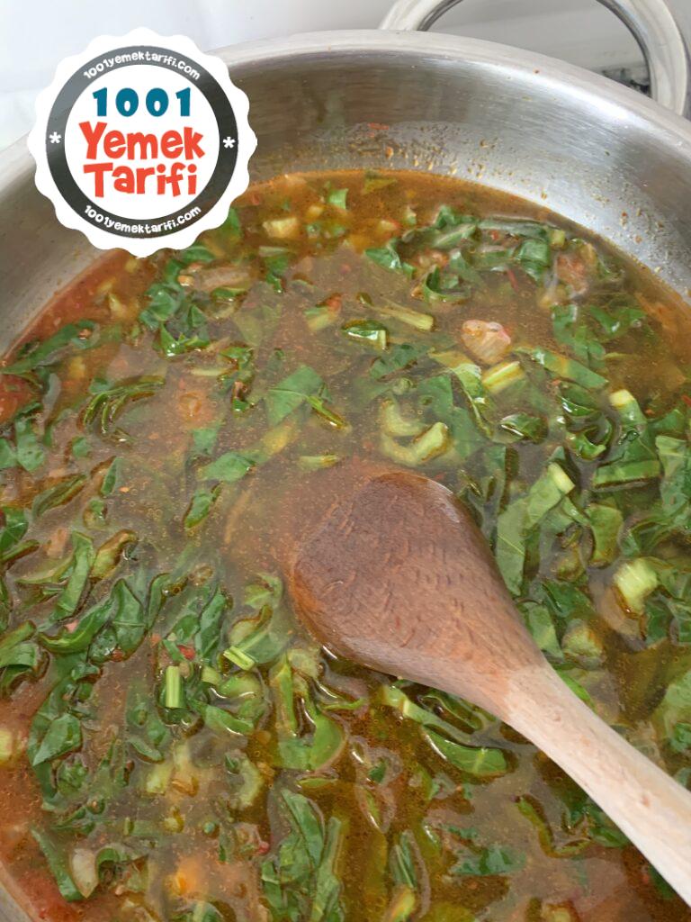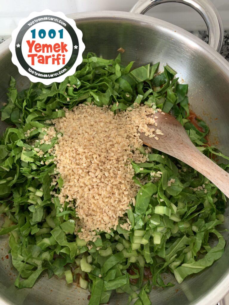 - salçalı su kaynayınca pazıları ve bulguru ekliyoruz