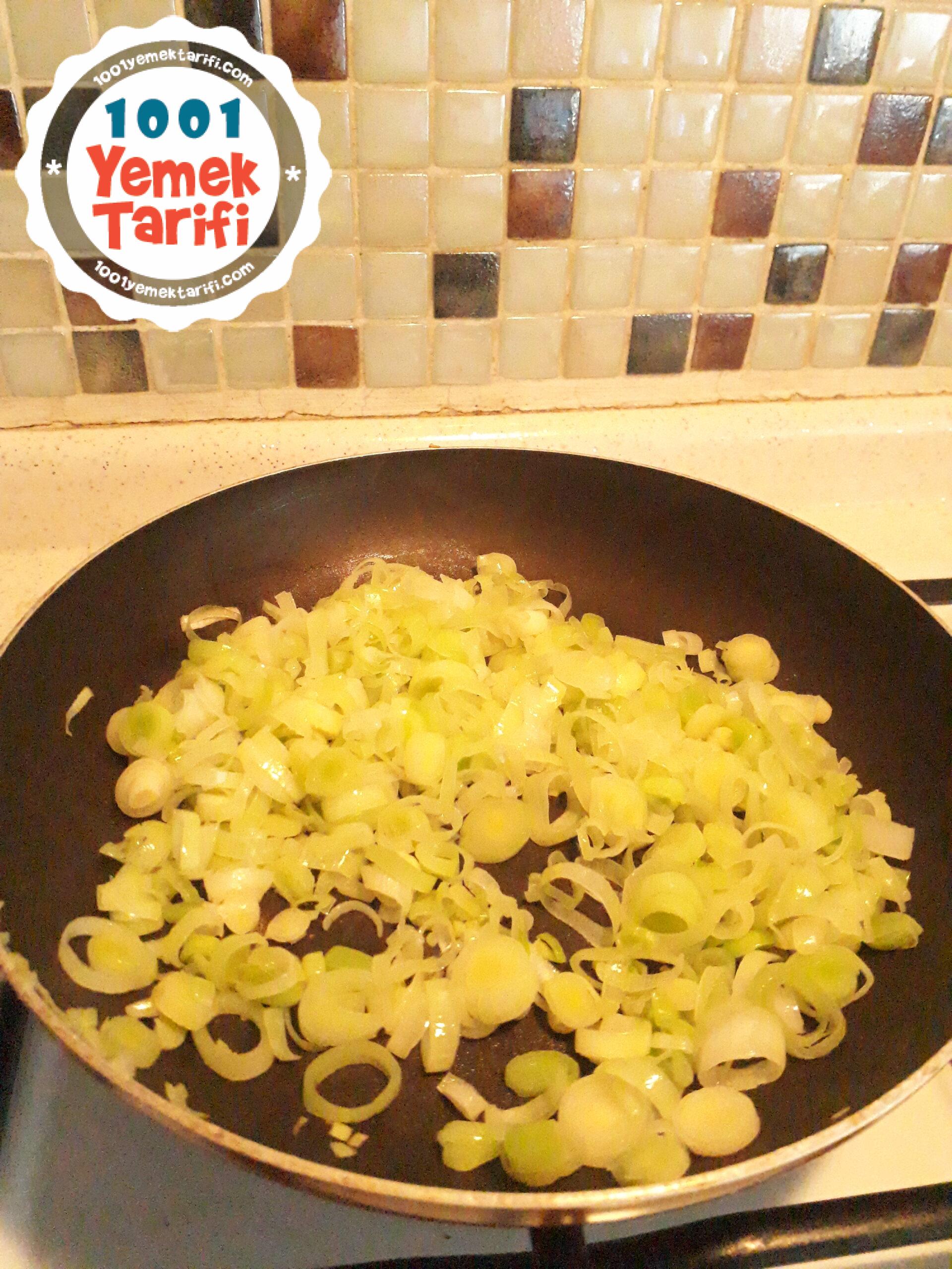 - Sonra uygun bir tavaya bir yemek kaşığı zeytinyağ ekleyip pırasayı yumuşayana kadar kavurun.