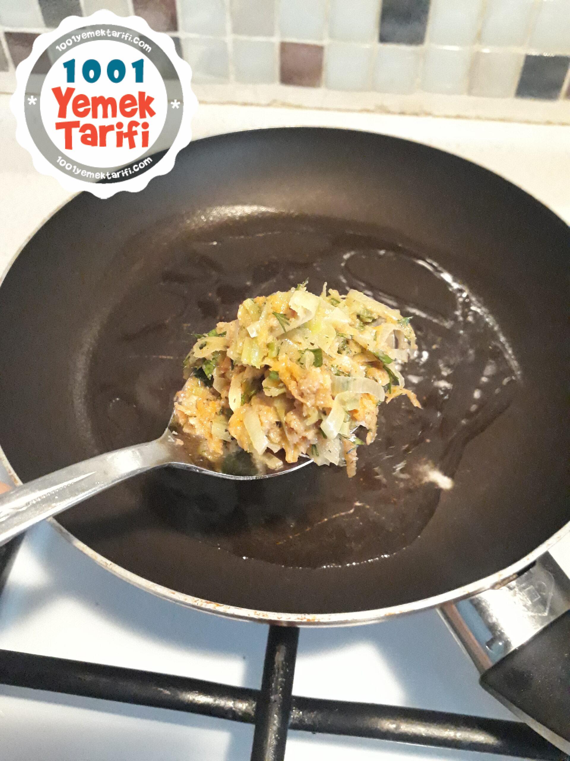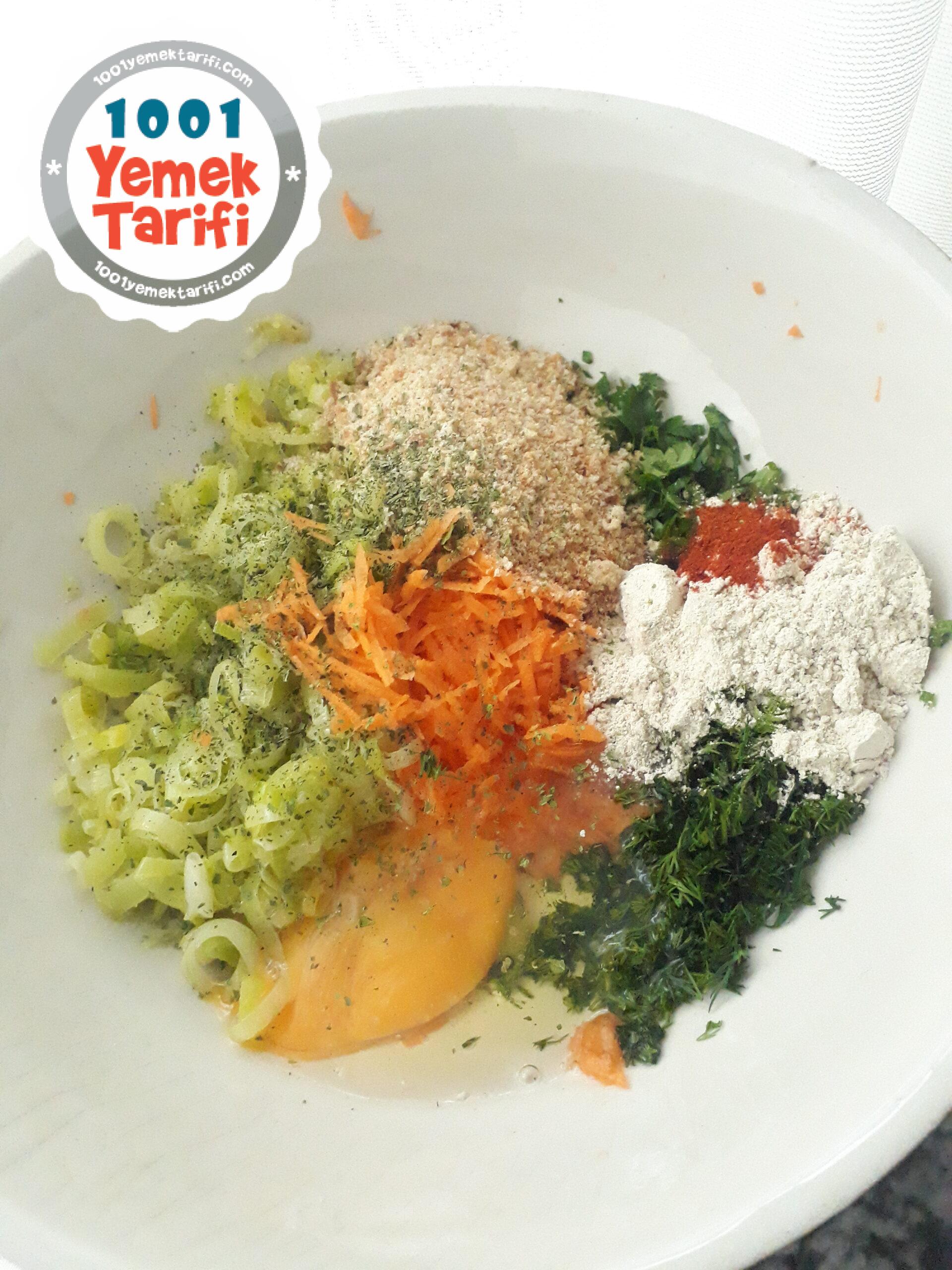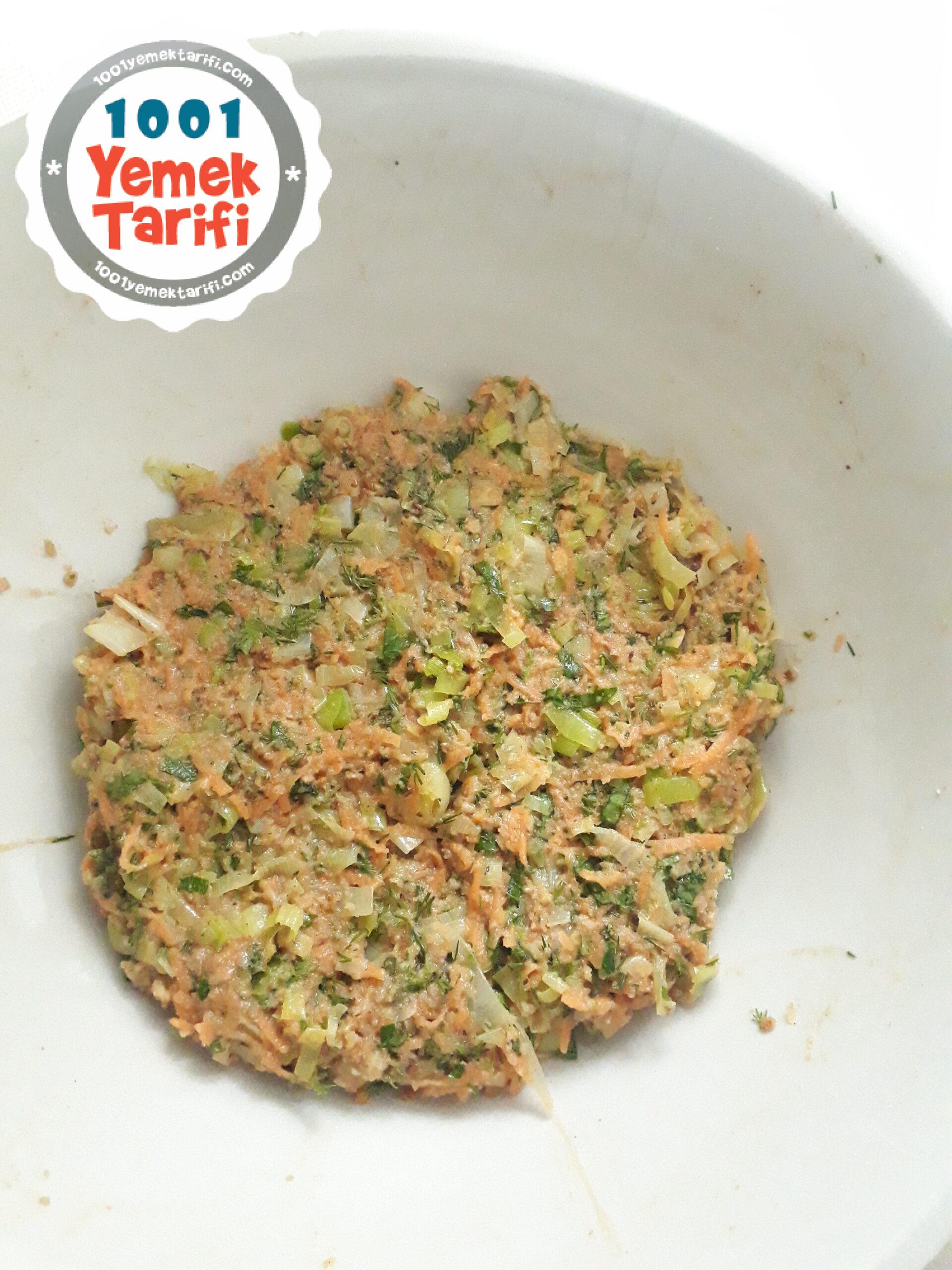 - Uygun bir kaseye pişen pırasayı ve diğer malzemeleri ekleyip iyice yoğurun.