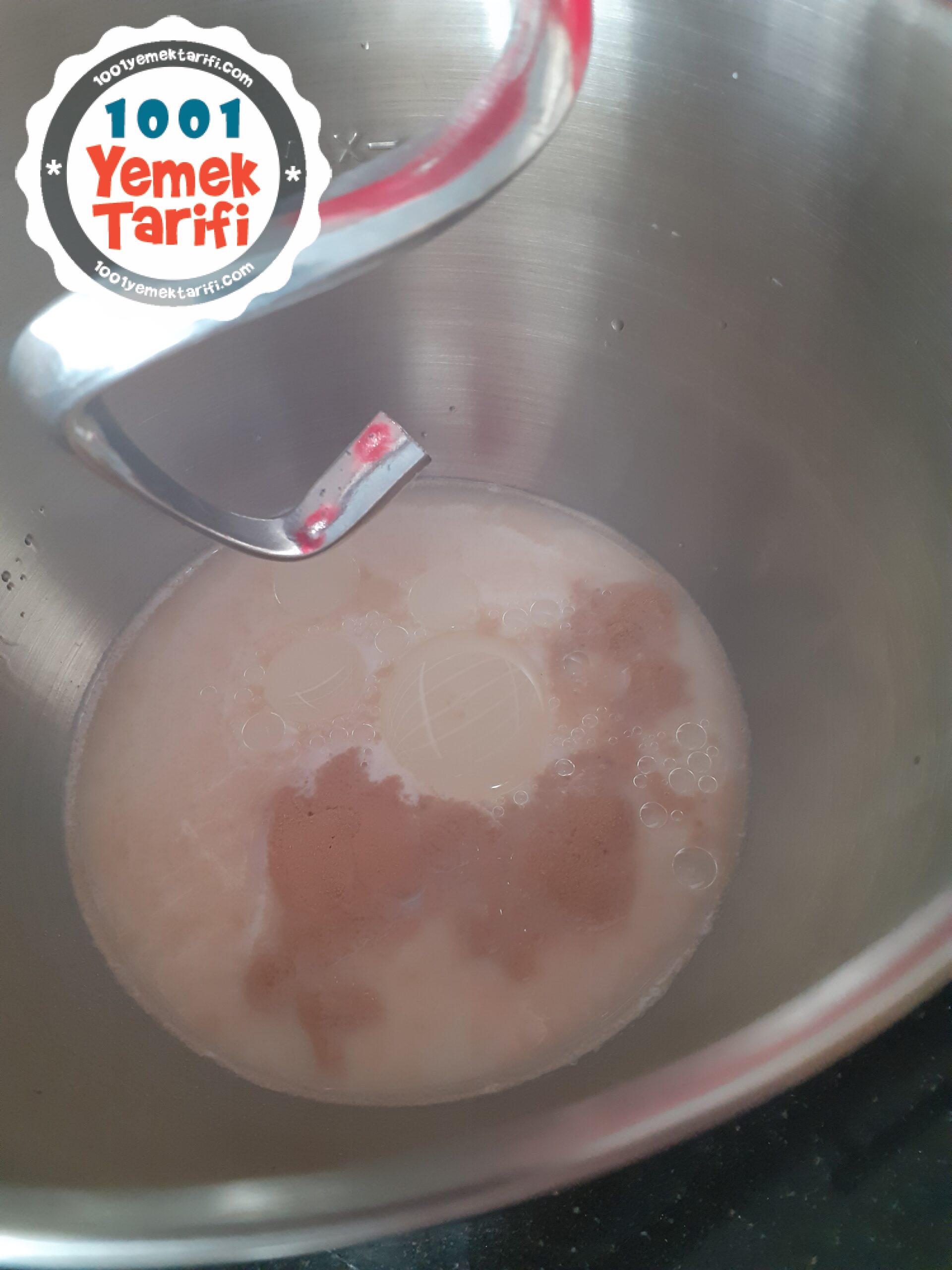 - Yoğurma kabımıza un hariç bütün malzemeleri alıyoruz.