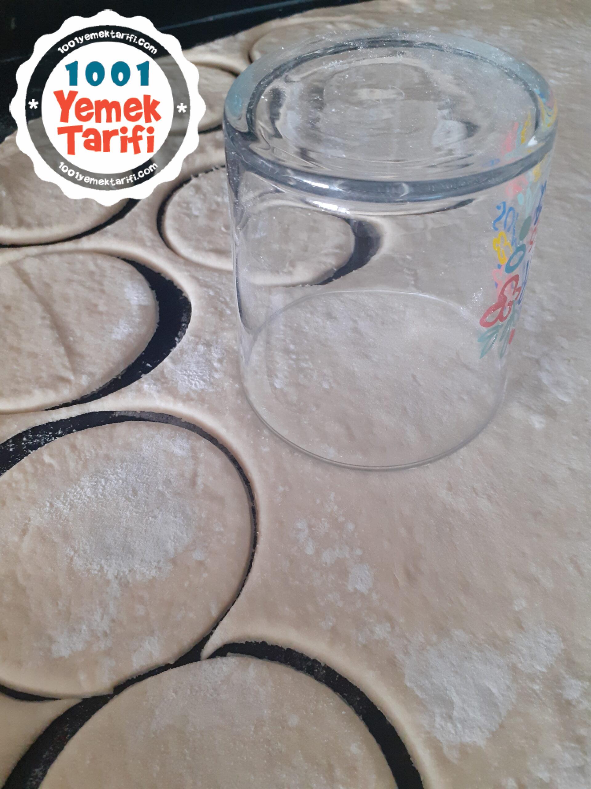 - Hamurumuzu açıyoruz ve istediğiniz ebatta bir bardağın ağız kısmıyla kesip şekil veriyoruz.