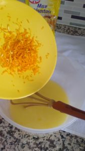 - Nişasta zerdeçal vanilya ve portakal kabuğu rendesi ilave edelim.