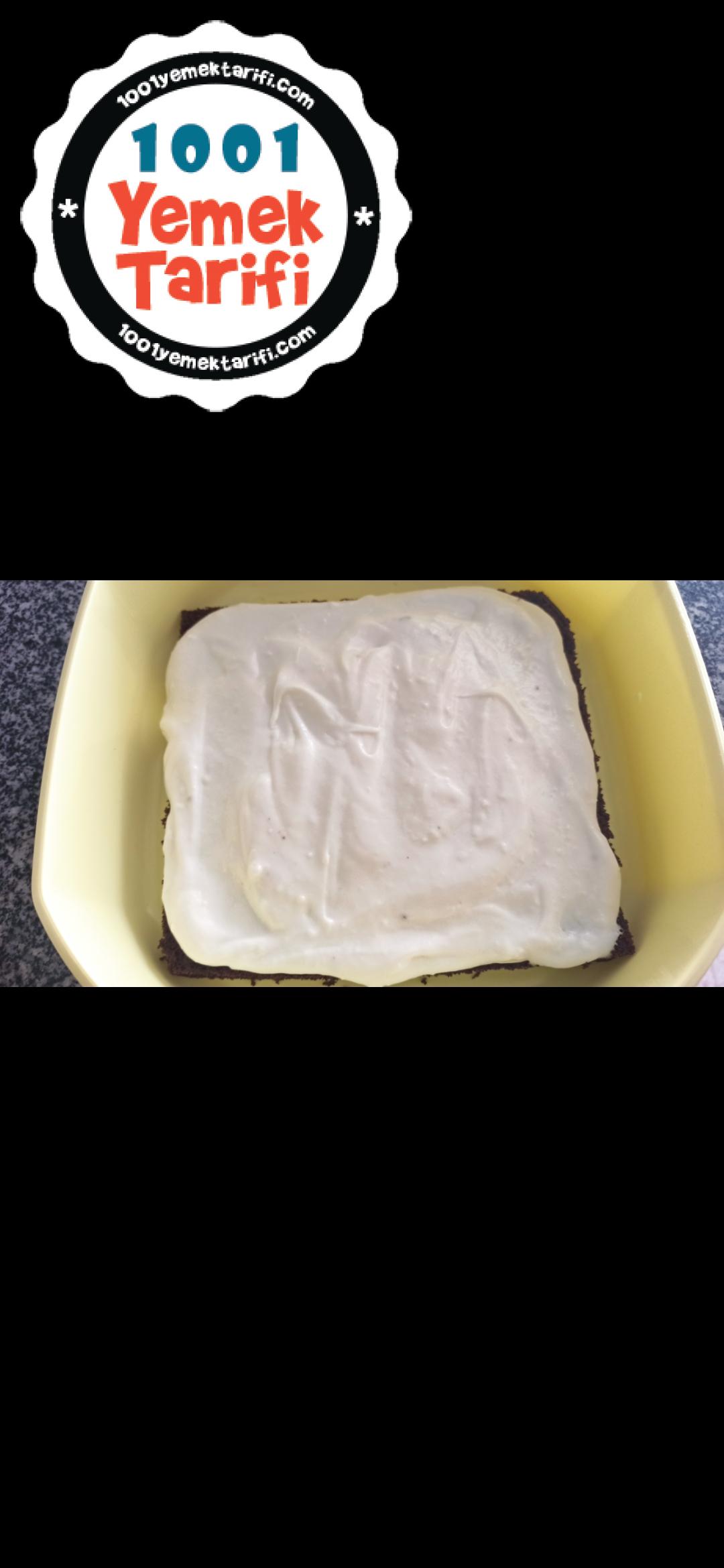 - Uygun bir kap içinde ilk parçanın üzerine krem şantimimizi sürelim.