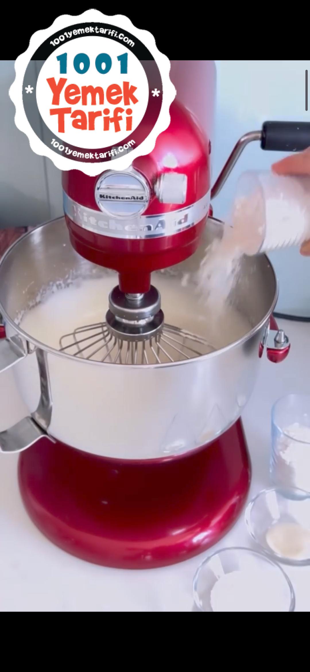 • Kabartma tozu ve unu havadan eleyerek ilave ediyoruz daha sonrasında şekerli vanilini ekliyoruz