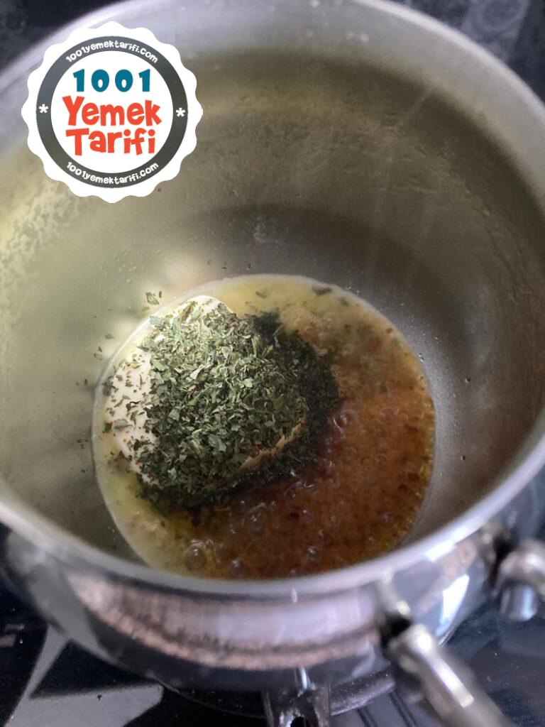 - Sos tavasına margarini ve baharatları atıp biraz fokurdatalım.