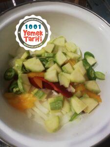 - Sonra suyunu ve baharatlarını koyup pişirelim.