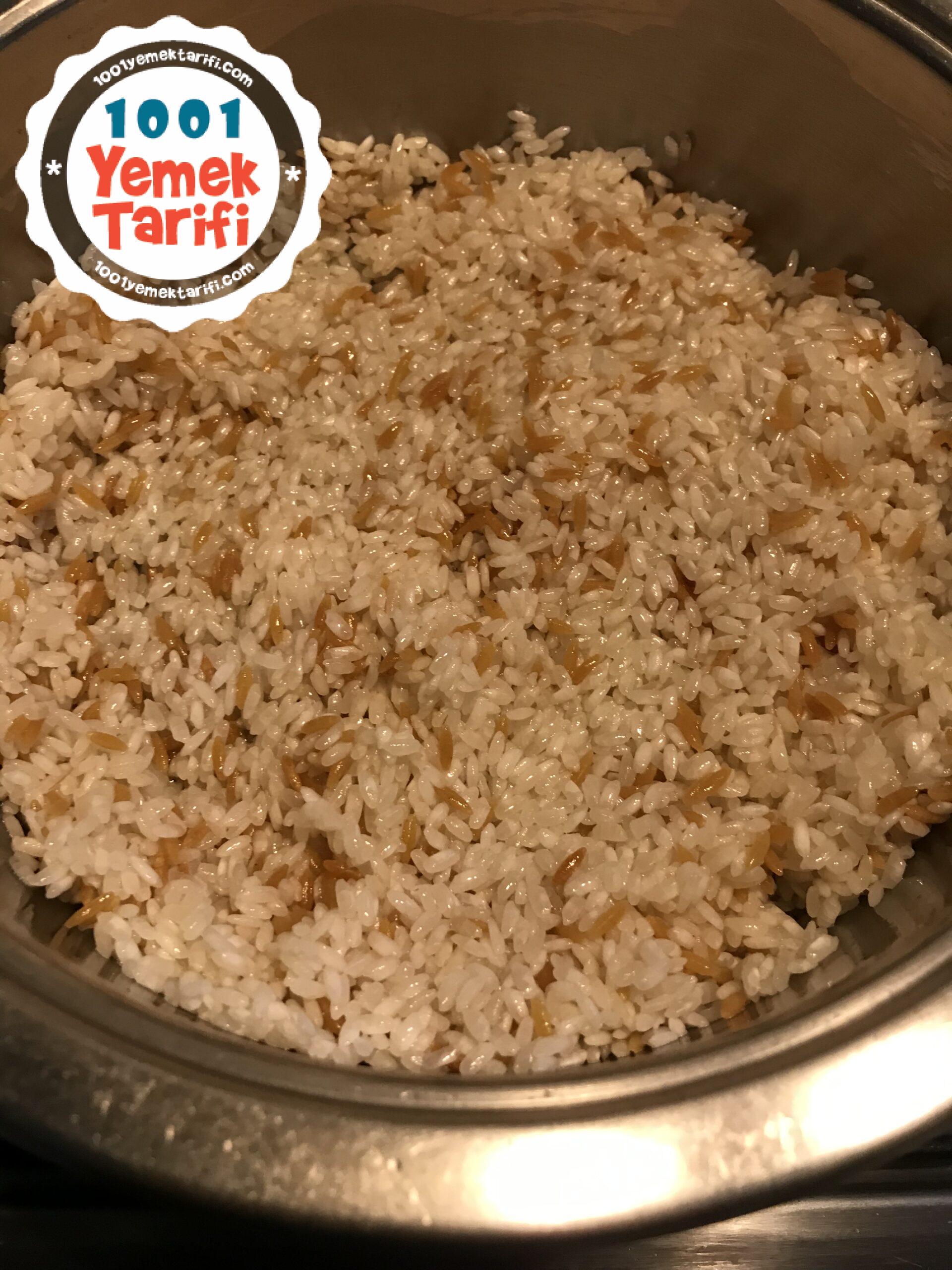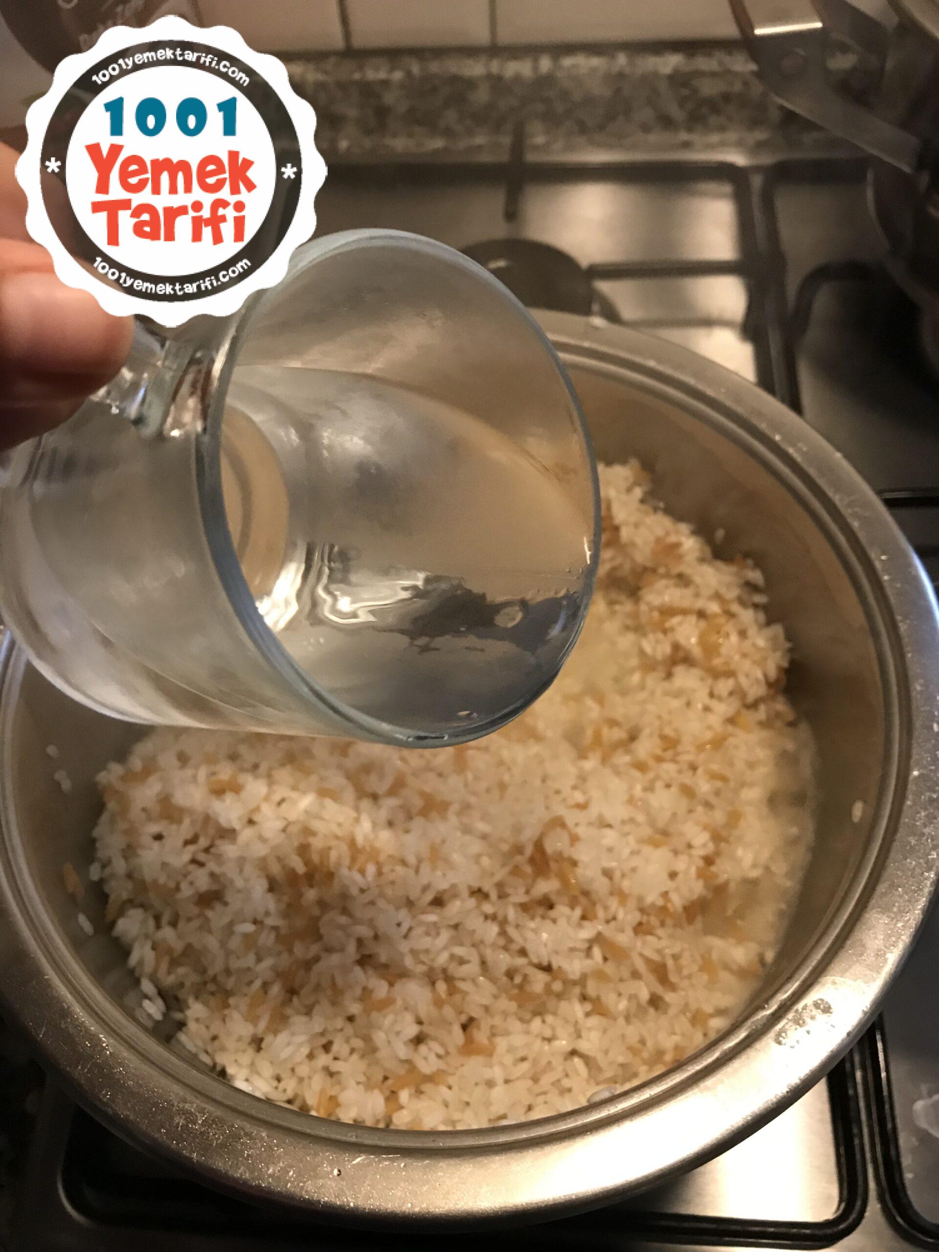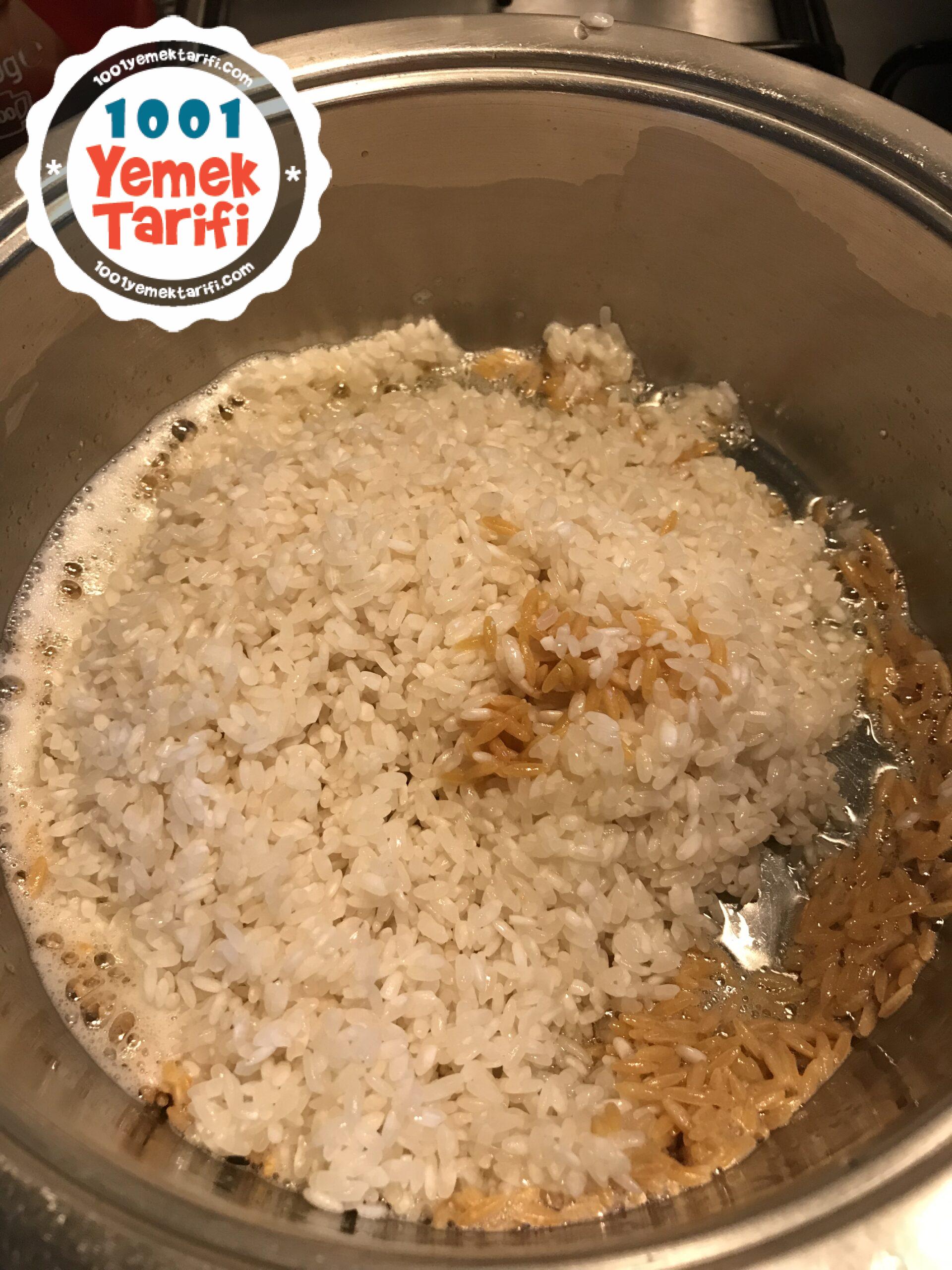 - Şehriyelerin rengi koyulaştıktan sonra pirinçleri ekleyin