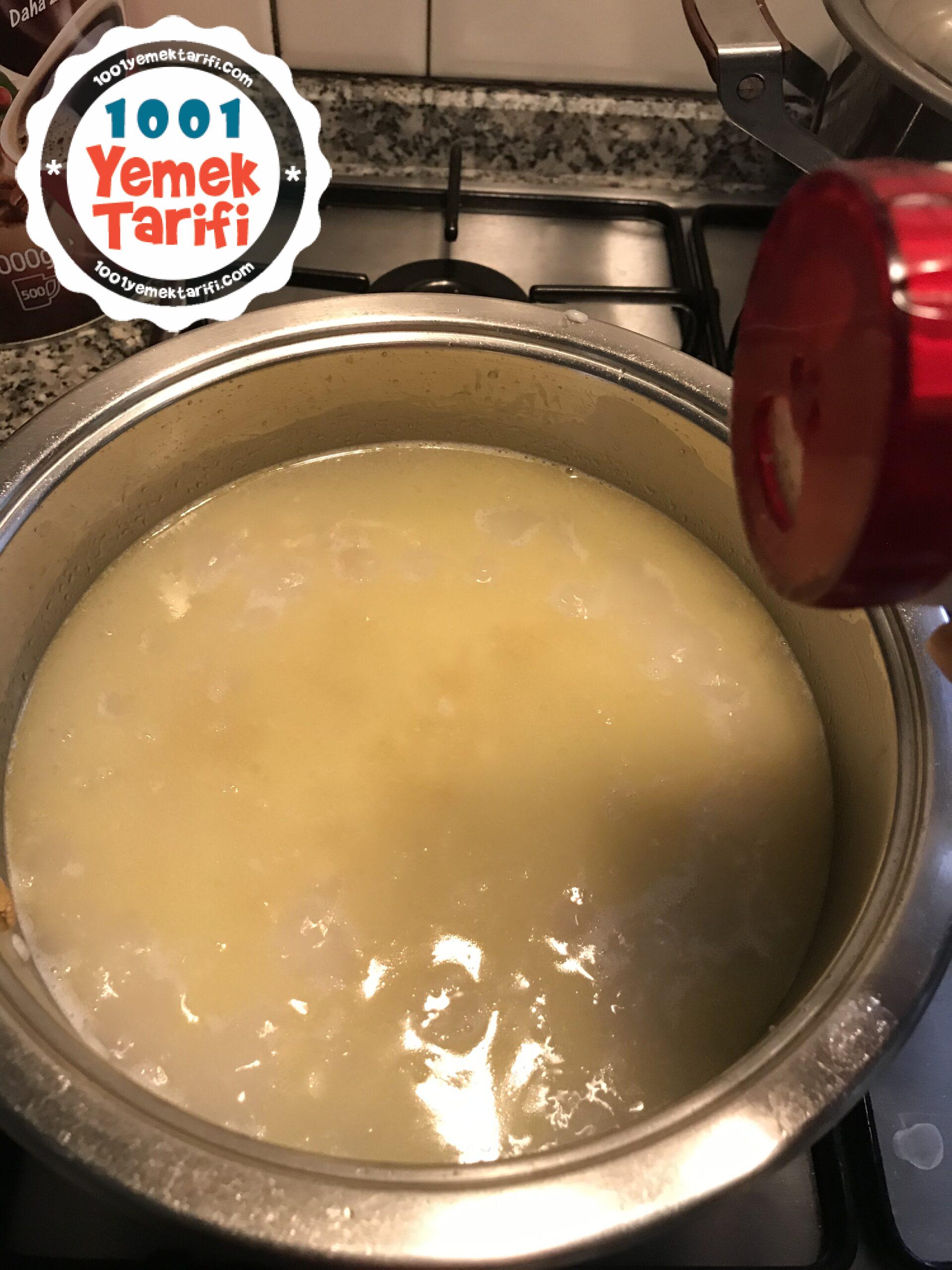 - Ardından sıcak suyu ve tuzunu ekleyin.