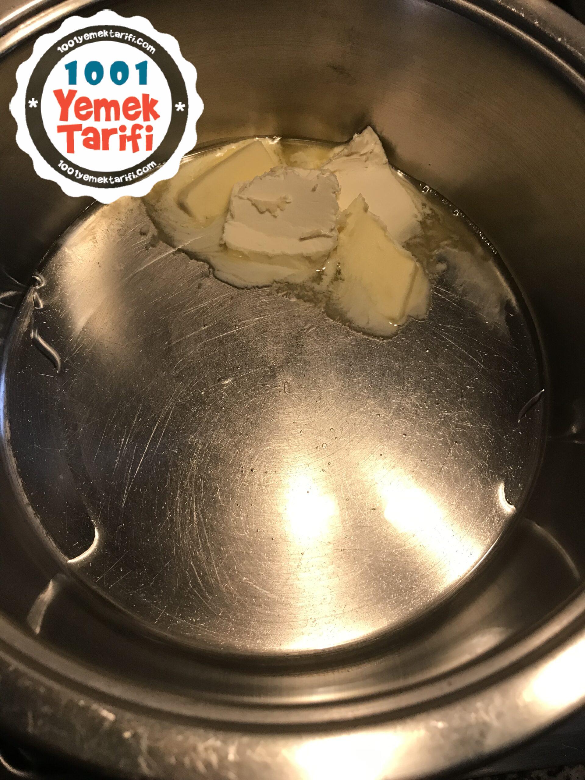 - Tereyağını tencerede eritin ardından sıvı yağı ekleyin.