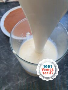 - Unu ve nişastayı eleyerek bu karışımın içine ekleyelim ve karıştıralım.
