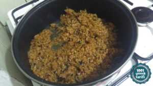 - Sonrasında pirinci koyup tane tane olana kadar kısık ateşte kavuralım.