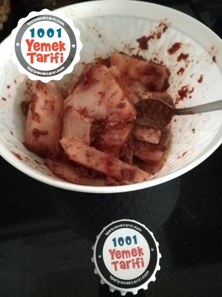 - Üzerine salçaları ve baharatları ekleyip sıvıyağı da koyup güzelce karıştıralım