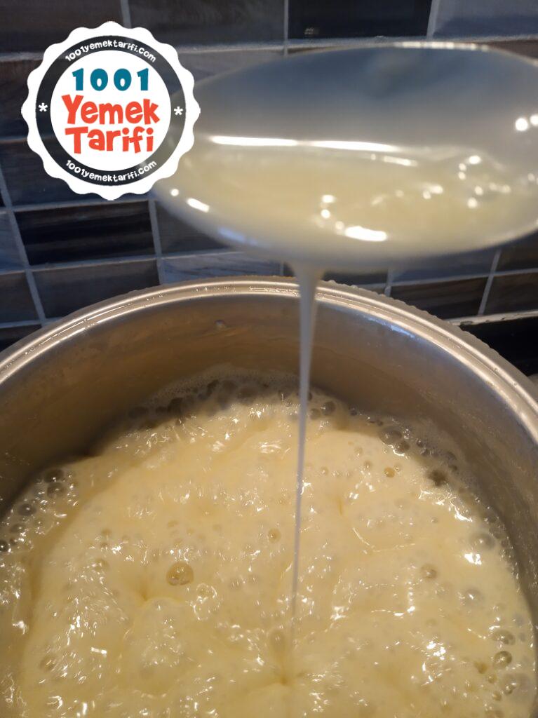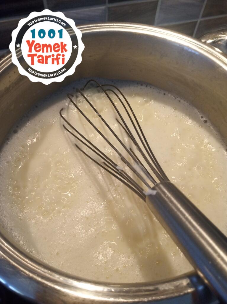 - Süt ve şekeri derin bir tencereye alıp iyice karıştırın